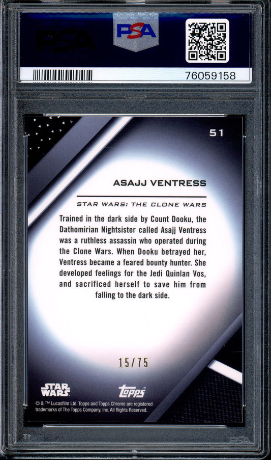 2022 Topps Chrome Black Star Wars Blue Refractor Asajj Ventress /75 #51 PSA 10 GEM MINT