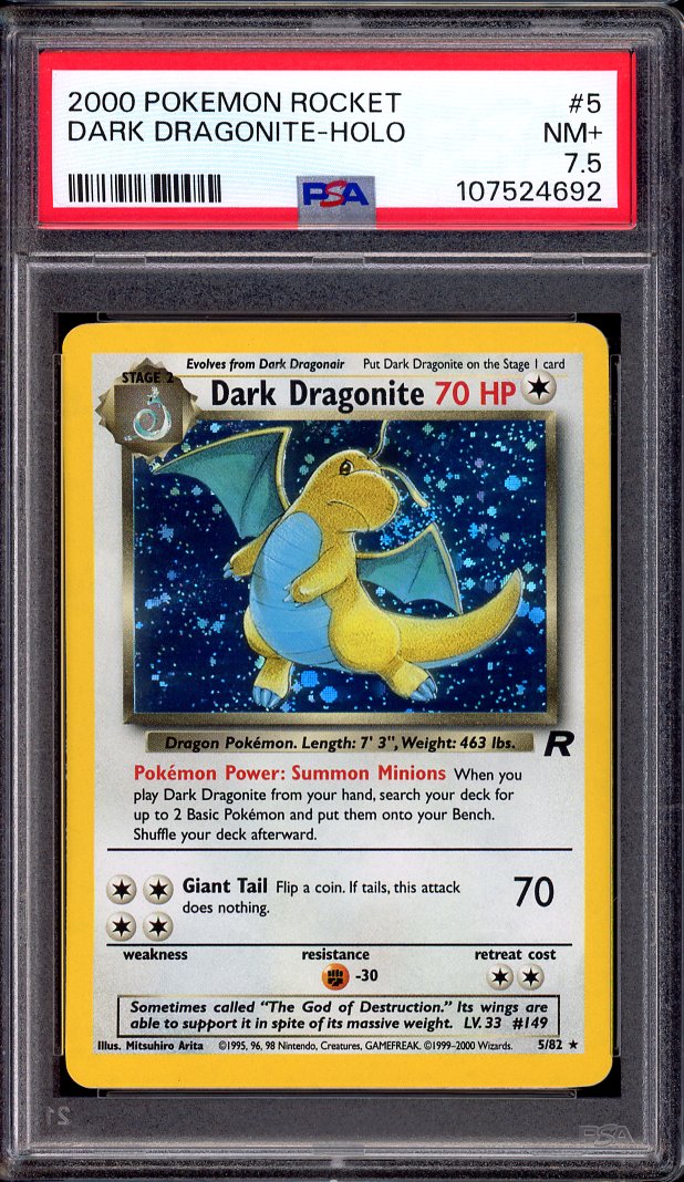 2000 Pokémon Rocket Dark Dragonite-Holo #5 PSA 7.5 NM+