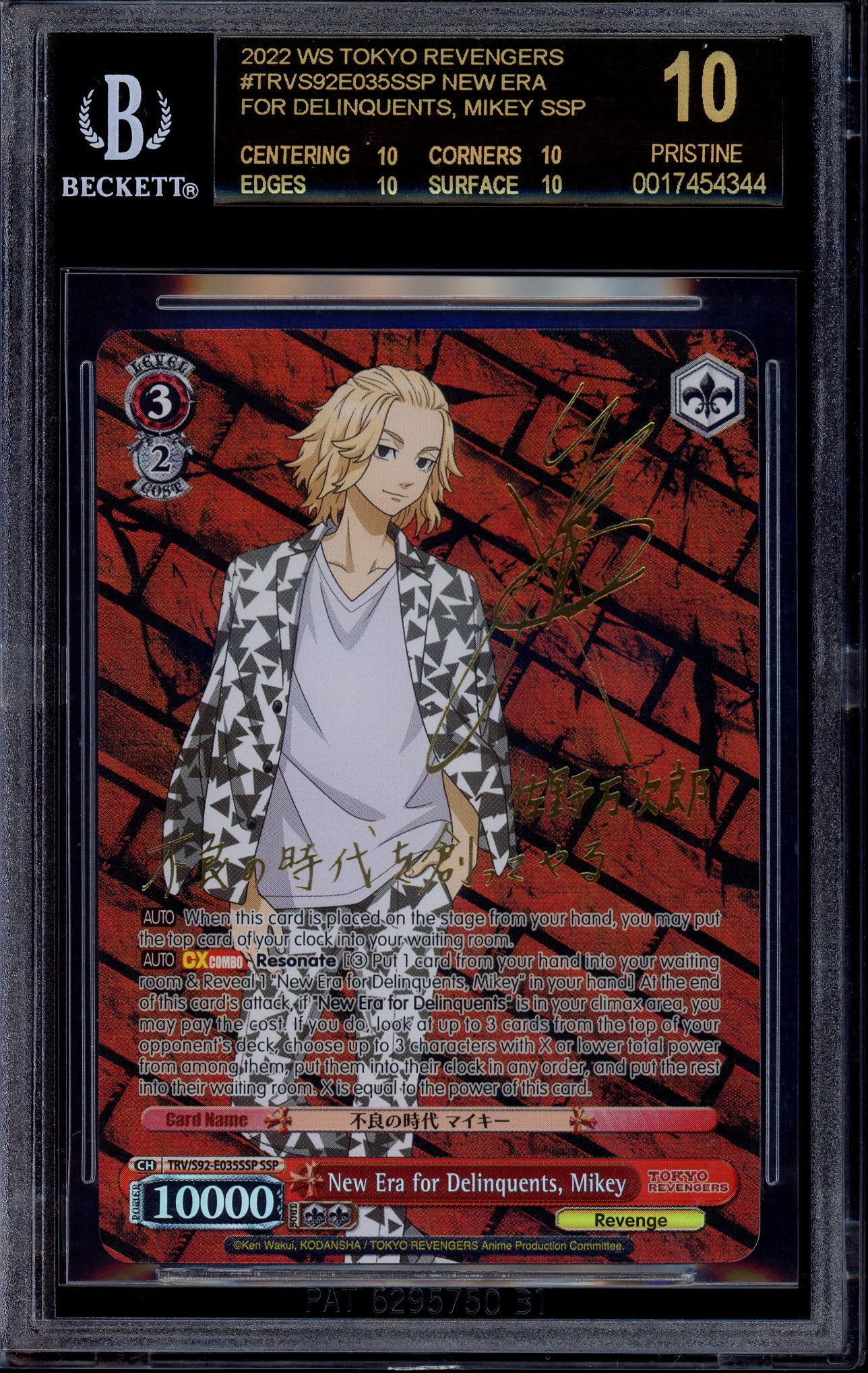 2022 Weiss Schwarz Tokyo Ravagers New Era For Delinquents, Mikey SSP BGS 10 PRISTINE BLACK LABEL